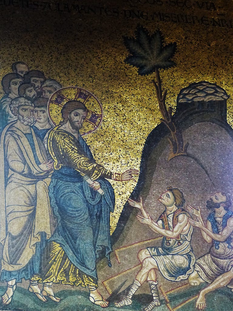 Truly, my brothers and sisters, the Gospel reveals to us today the great truth that every tragedy, every suffering, every affliction which our fallen humanity experiences in this life (whether in body or in spirit) can not only be healed by grace of our all-merciful and all-powerful God, but can even be transfigured into the very source of absolutely unparalleled and incomprehensible grace — and not only for the one suffering, but also through them for all mankind in all ages. For it was through their very suffering that the men in today’s Gospel passage came to know the mercy and love of our Lord Jesus Christ, and it is through their experience that even we poor sinners — two thousand years later and half a world apart — are today, in the midst of our own struggles and temptations, being given the “patience and comfort of the Scriptures” that we too “might have hope.”